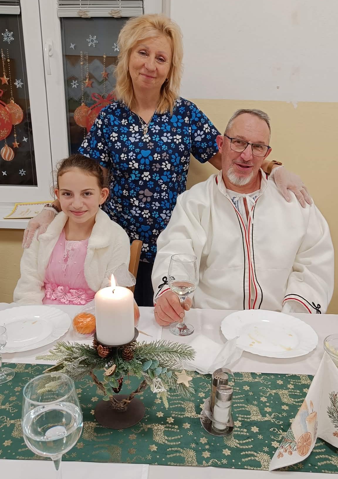 Štedrá večera u nás bola pripravená s veľkou starostlivosťou a láskou. Stolovanie bolo prestreté sviatočne, nechýbala kapustnica, šalát, ryba, oplátky s medom ani slávnostný prípitok. Celá atmosféra večere bola pokojná, hrejivá a plná vďačnosti. Pokojný Štedrý večer doplnila návšteva koledníkov Jožka a Emky. Pripomenuli nám pravý význam Vianoc a dodali sviatkom ešte hlbší význam.
